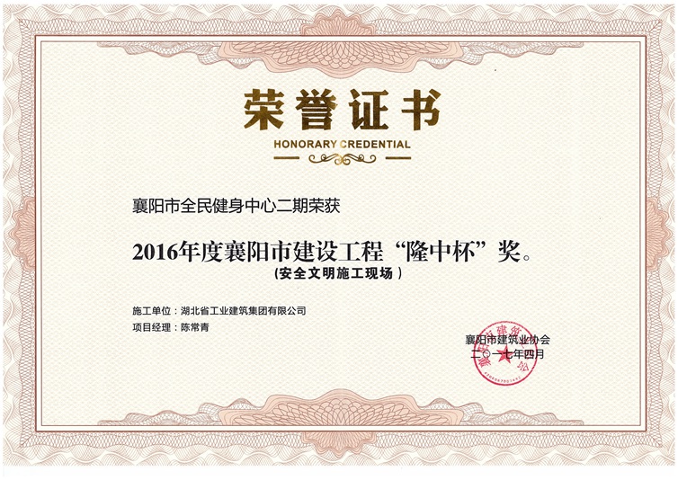 襄陽全民健身中心二期安全文明施工隆中杯