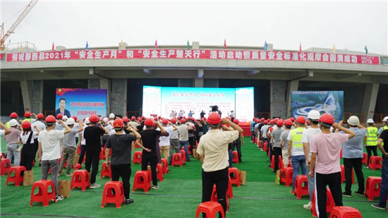 6月16日上午,鄖西縣2021年“安全生產月”和“安全生產楚天行”活動啟動暨質量安全標準化觀摩會在湖北工建鄖西PPP文體中心項目舉行。