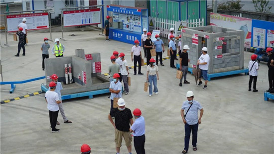 觀摩會上,首先播放了建筑施工安全警示片,重點介紹了文化體育中心項目安全質量管理方面的工作經驗以及項目建設中運用的新工藝、新技術。會議對鄖西PPP文體中心項目“安全標兵、工建匠星”進行了表彰,并現場開展了安全宣誓和高處墜落及安全生產消防應急演練活動。活動現場,與會人員還觀摩了項目安全文明施工標準化建設成果及樣板展示。